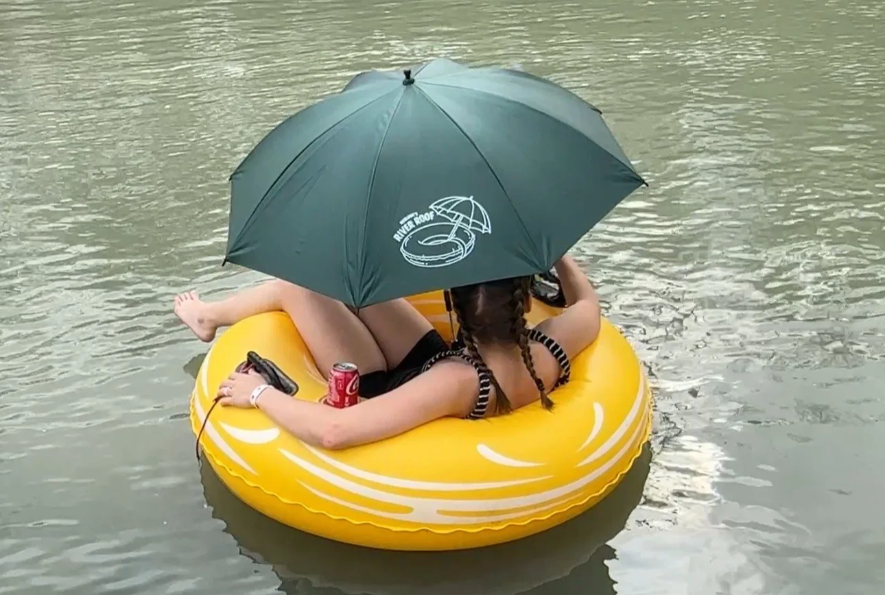 The River Roof is a UV-protective shade umbrella with an adjustable strap that attaches securely to any size inner tube!